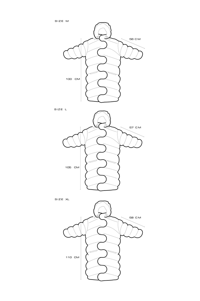 high-performance down-blend puffer coat with detachable astronaut hood and sculptural silhouette.