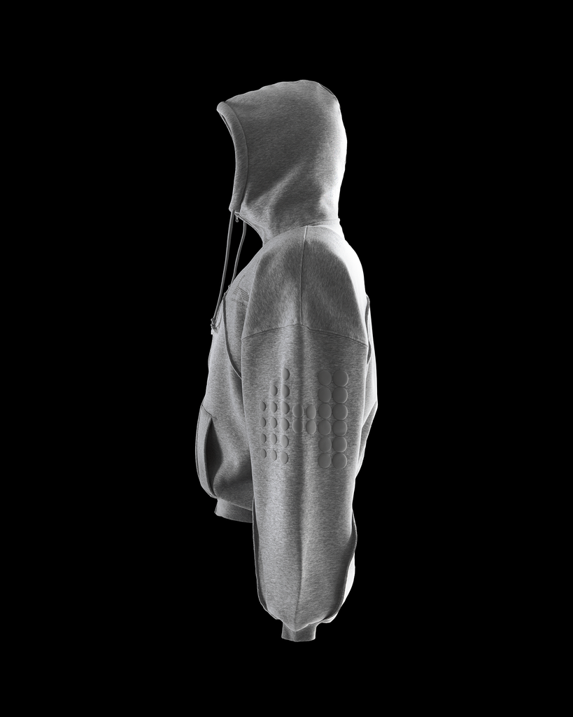 unisex long sleeve YKK zip-up hoodie with pockets & puff prints on front & sleeve.